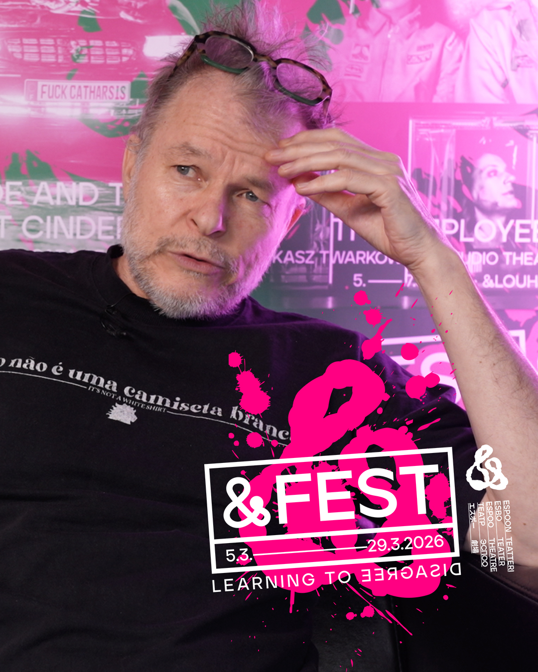 Tämä on paras ja siistein juttu mitä suomalaisessa kulttuurikentässä on tapahtunut aikoihin. Kuratointi on ollut mieletöntä, oon nähnyt ihan supervaikuttavia esityksiä ja kaikki oheisohjelmakin on ollut tosi onnistunutta. Esitysten jälkeen on ollut mahtavaa istahtaa purkubisselle ystävien ja tuttujen kanssa, yleinen ilmapiiri on ollut tosi miellyttävä. Myös lippubundleille peukkua. Ja siis aivan kaikelle!!!!! Mitä valtavin kiitos koko jengille, joka on ollut tekemässä tätä. Espoon teatterilla on ollut muutenkin hyvä meininki, mutta &FEST on helposti viiden tähden suoritusYleisöpalaute
