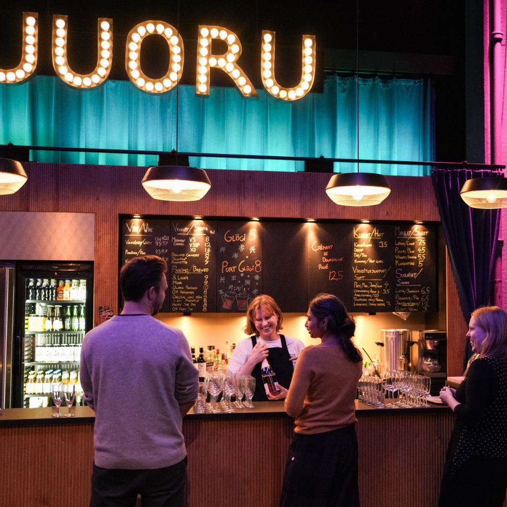 Kun esitys on &Revontulessa, väliaikatarjoiluista vastaa teatterin oma lämpiöbaari Bar Juoru.