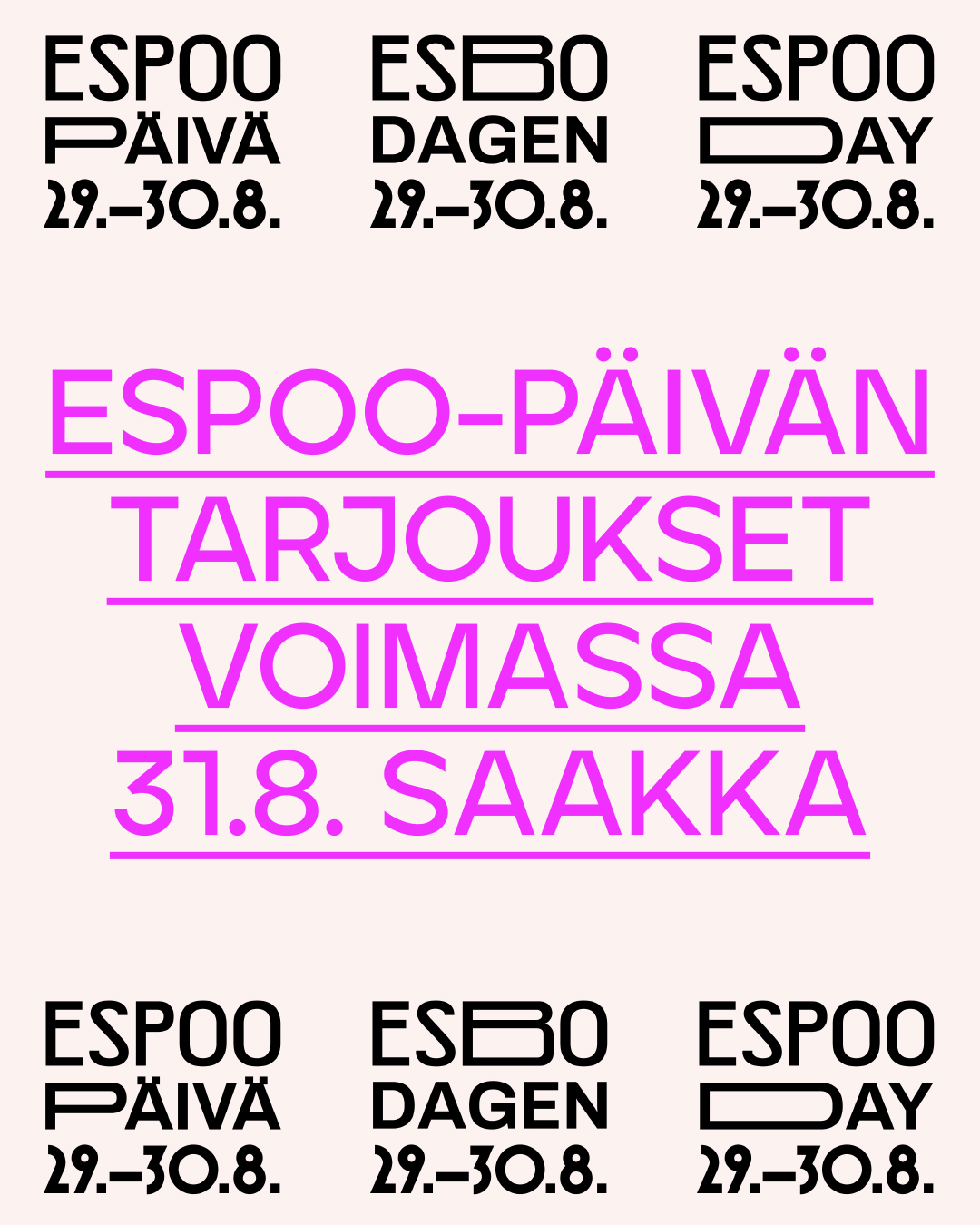 Osta tarjousliputEspoo-päivän ohjelmaa eri puolilla kaupunkia