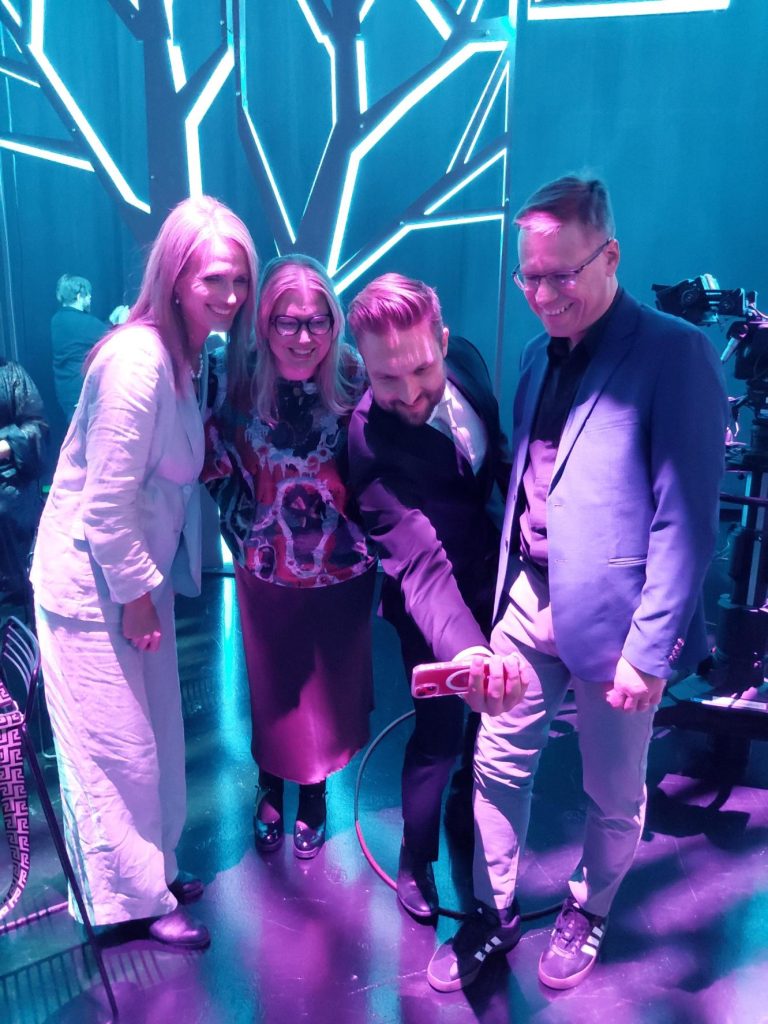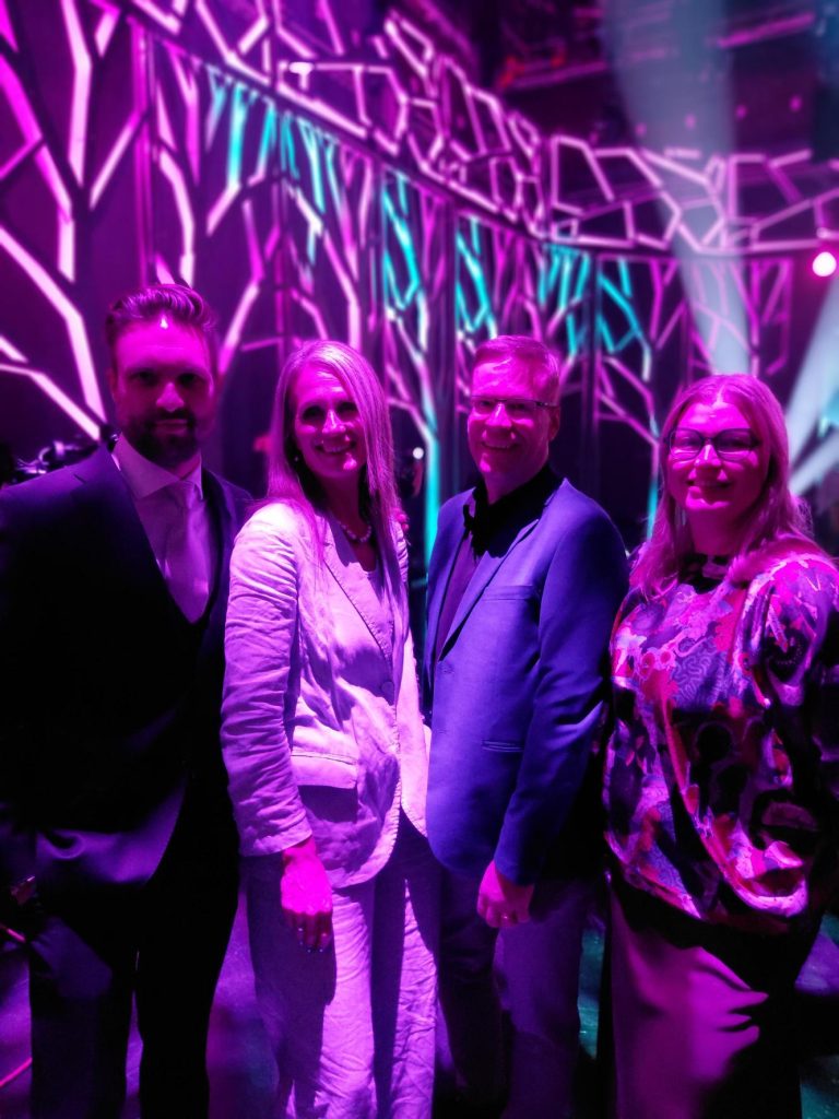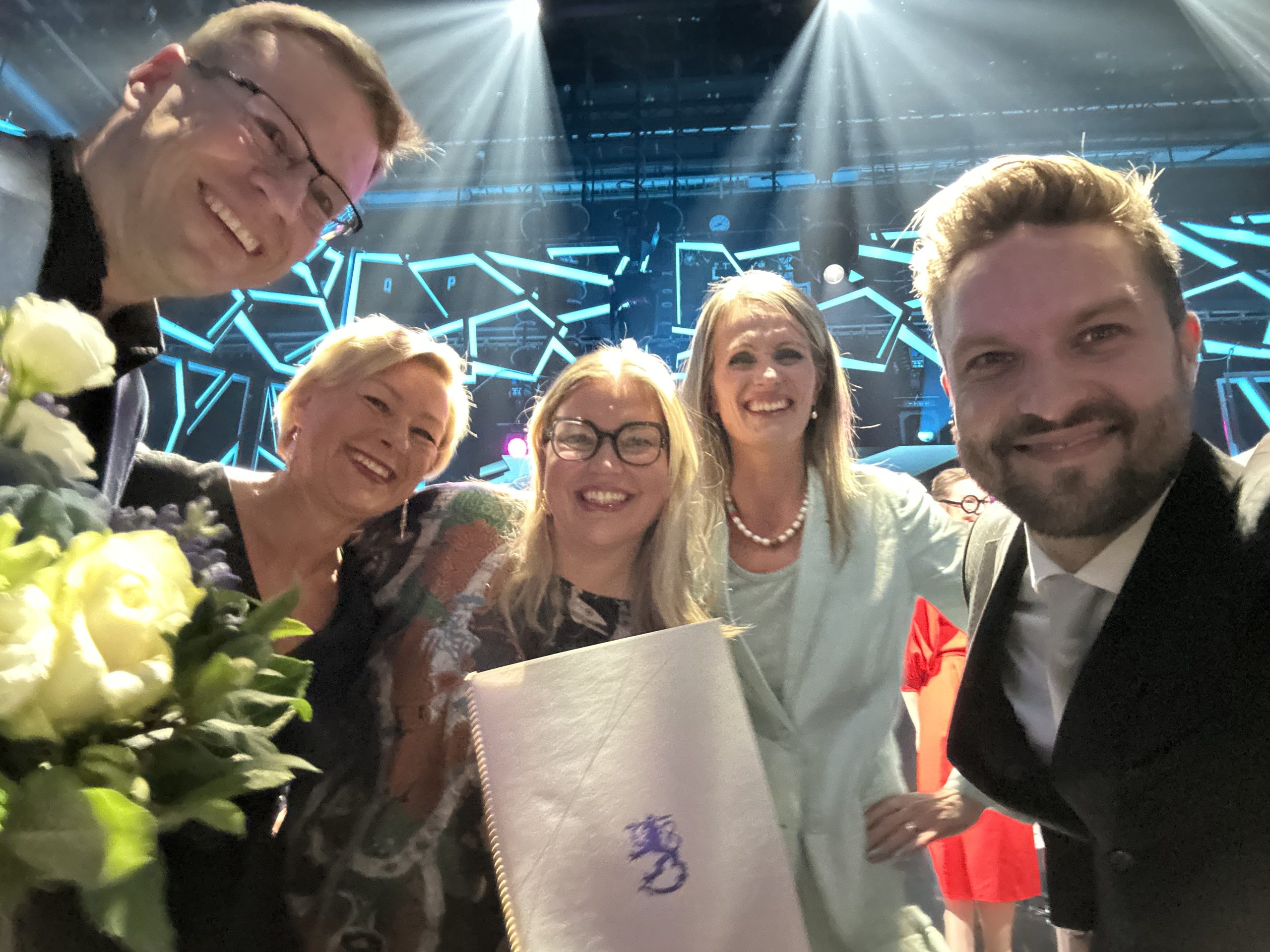 Kuvissa: tekninen päällikkö Heikki Örn, Espoon kulttuurijohtaja Susanna Tommila, myynti- ja markkinointipäällikkö Karoliina Kiviluoto, toimitusjohtaja Matilda von Weissenberg sekä taiteellinen johtaja Jussi Sorjanen.